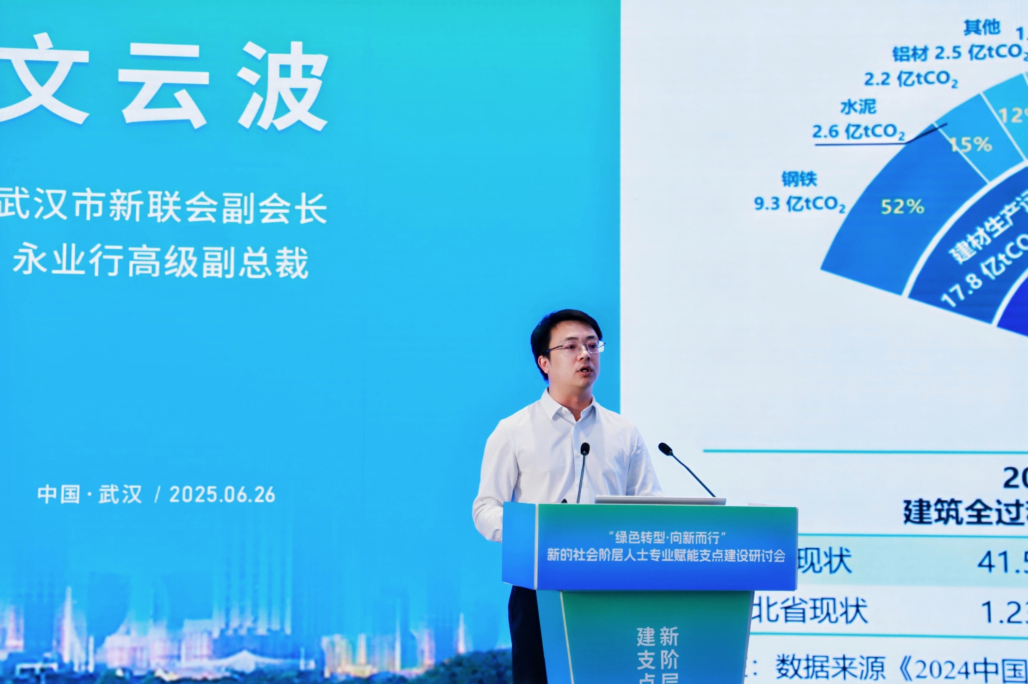 2025年6月26日,“绿色转型 向新而行”新的社会阶层人士专业赋能支点建设研讨会在中碳登大厦召开。会议以“新阶层,新力量,建支点,立新功”为主题,由湖北省新的社会阶层人士联谊会(以下简称“新联会”)主办,新联会评估师分会、湖北永业行评估咨询有限公司(以下简称“永业行”)承办,碳排放权登记结算(武汉)有限责任公司、武汉双碳产业研究院、武汉双碳产业发展服务有限公司协办。